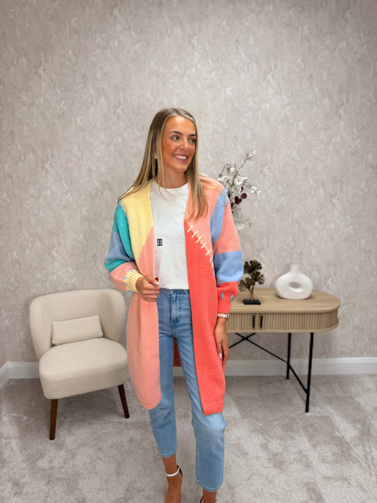 Stitch Detail Colourblock Cardigan Long