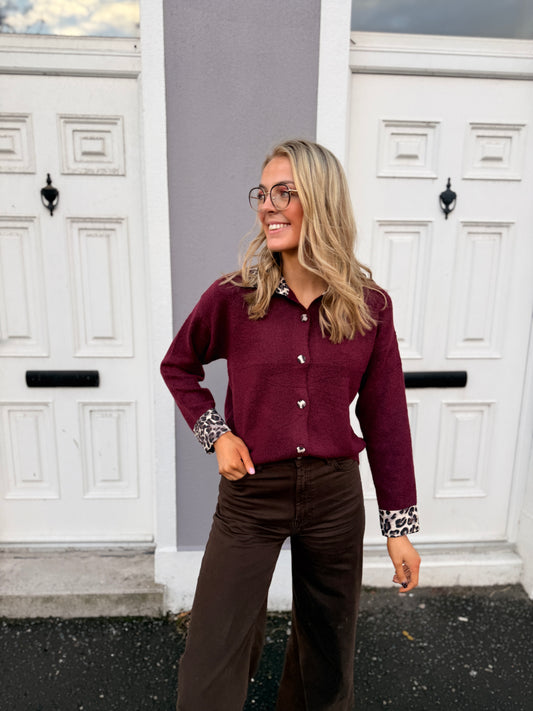 Burgundy Leopard Frill Jumper