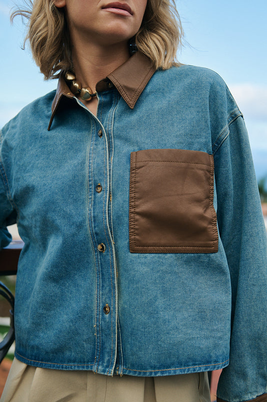 Denim Shirt Brown Detail