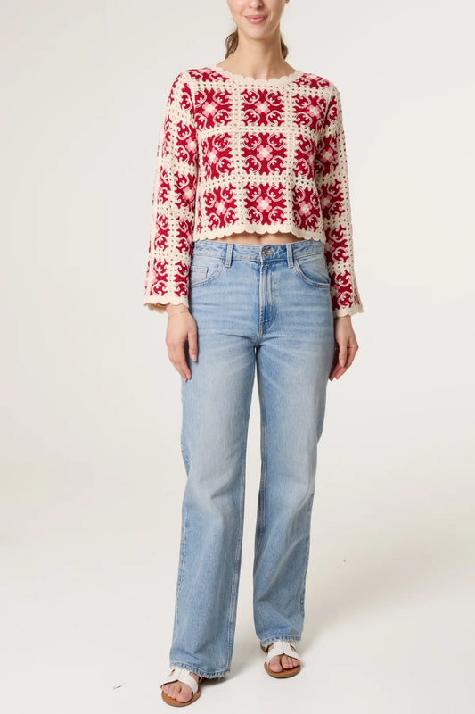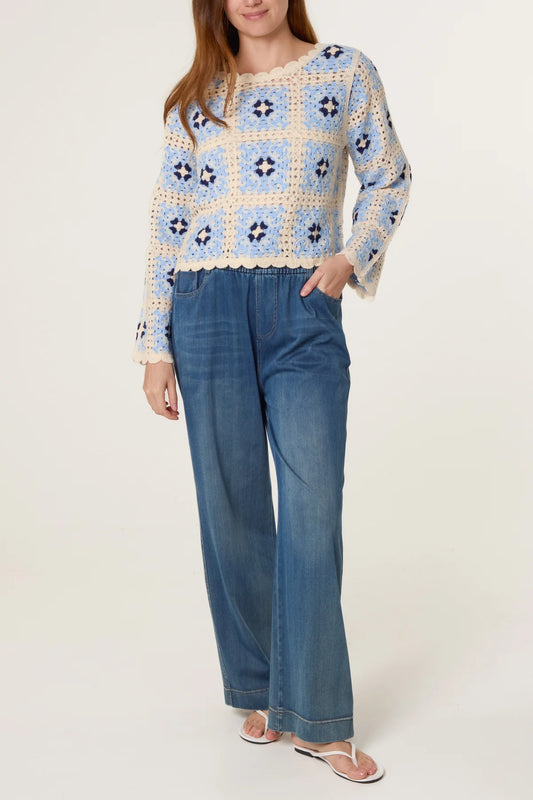 Floral Crochet Cropped Jumper Blue