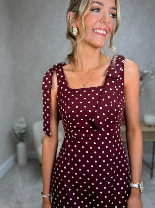 Jovi Tie Shoulder Square Neck Midi Dress Berry Spot