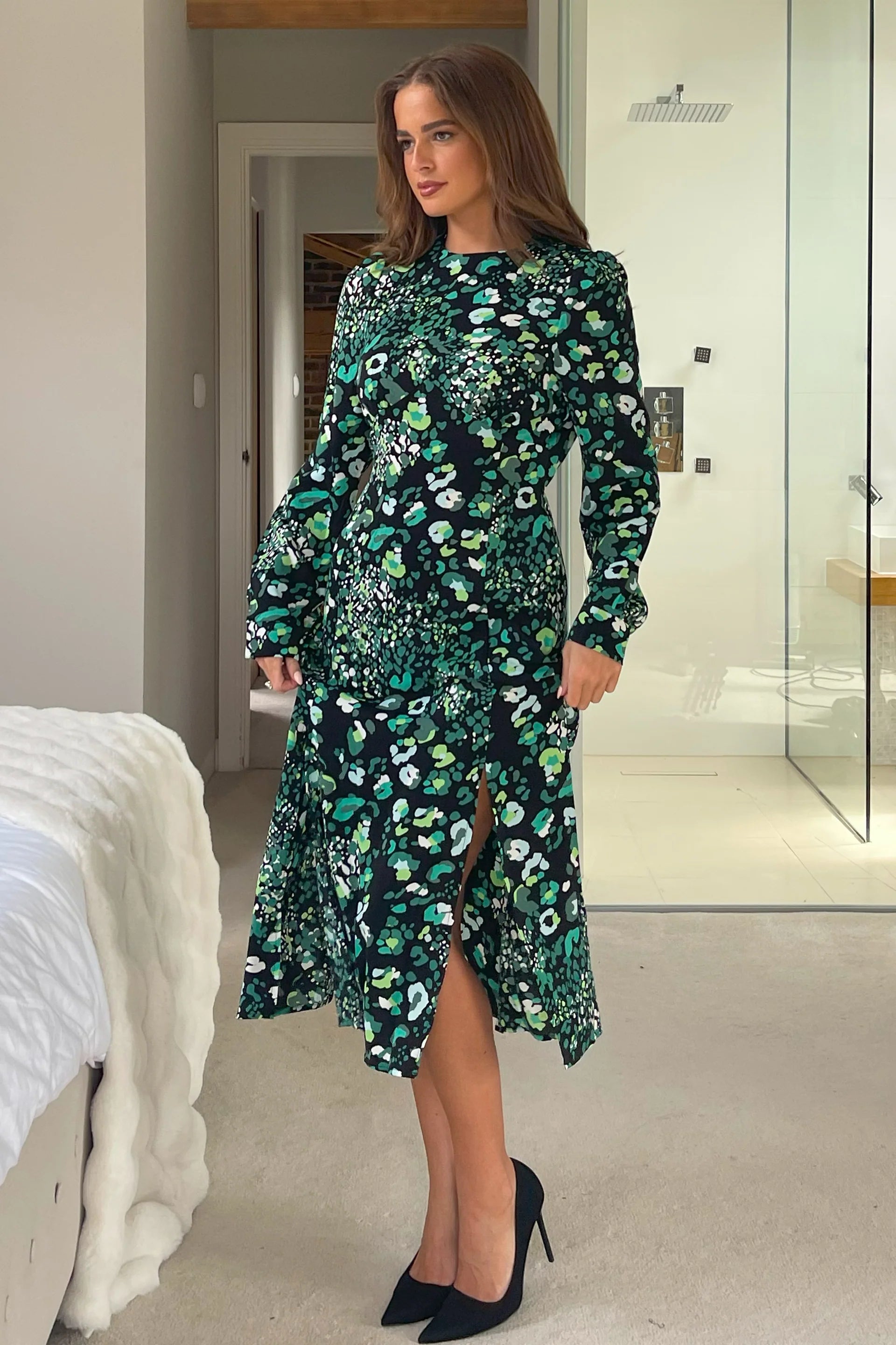 Fabulous is an understatement for our best selling Cass midi dress! This midi dress is super flattering with its round neckline, long sleeves with cuff detailing and intricate bust seam detail. Crafted in a quirky print, the fitting of this style contours your curves creating the most stunning silhouette, Finished with two thigh high splits, Cass is the ultimate outfit for every occasion. Wear with trainers or boots for a daytime vibe or put on your favourite heels & be party ready.