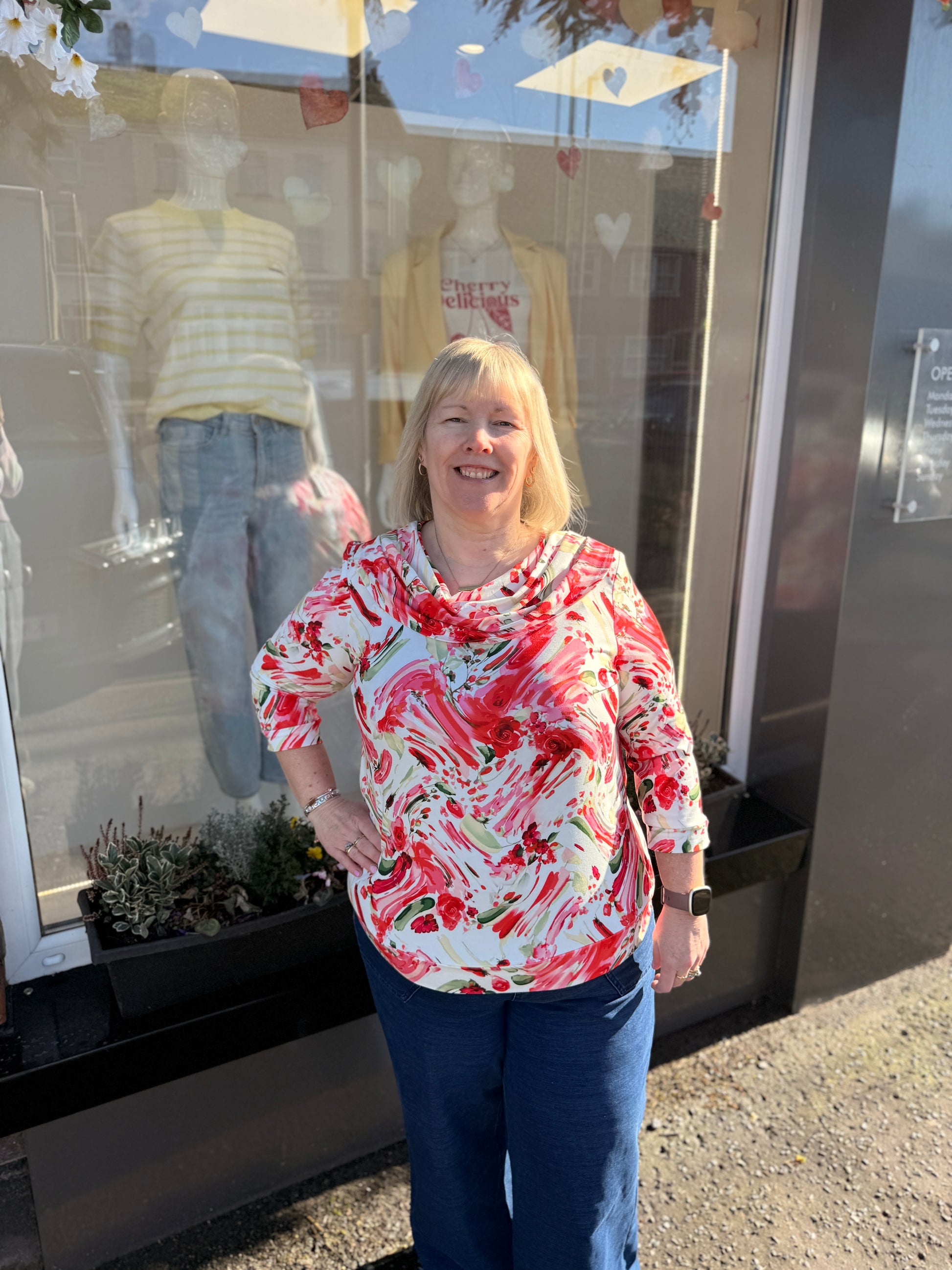 YEW 2647 Red Green Cowl Neck Top
